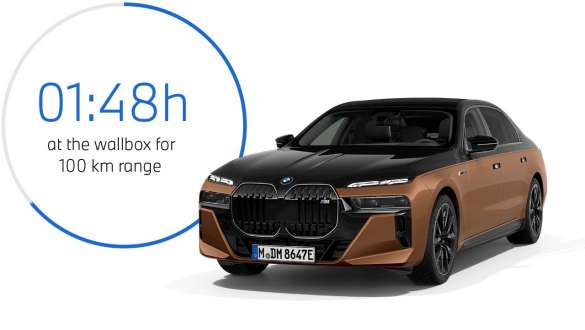 BMW i7 M70 xDrive[1]: Potrošnja energije, kombinovani WLTP u kWh/100 km: 23,3-20,8; Električni domet, WLTP u km: 488-560